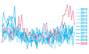 first published: 08.10.2020data and text updated: 19.02.2021 Here we look at the total number of deaths per week (all-causes together) since 2010. The data for 2020 is shown in red and a noticable increase in the weeks 45 – 53 is evident compared to 2010-2019. The sudden rise in weekly deaths is most likely due … Continue reading Weekly Deaths in Luxembourg